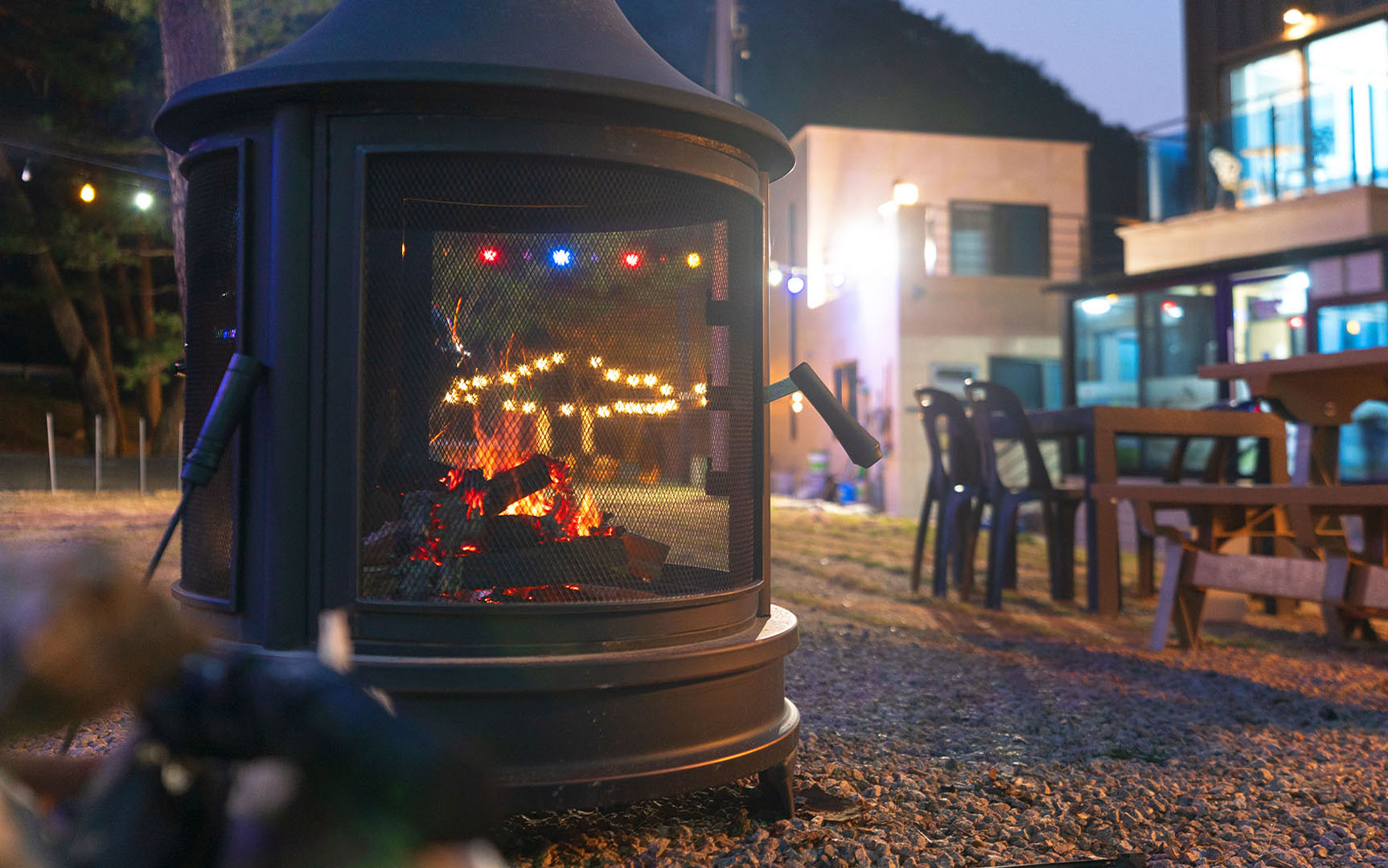 저녁이 되면 프라이빗한 바비큐장에서